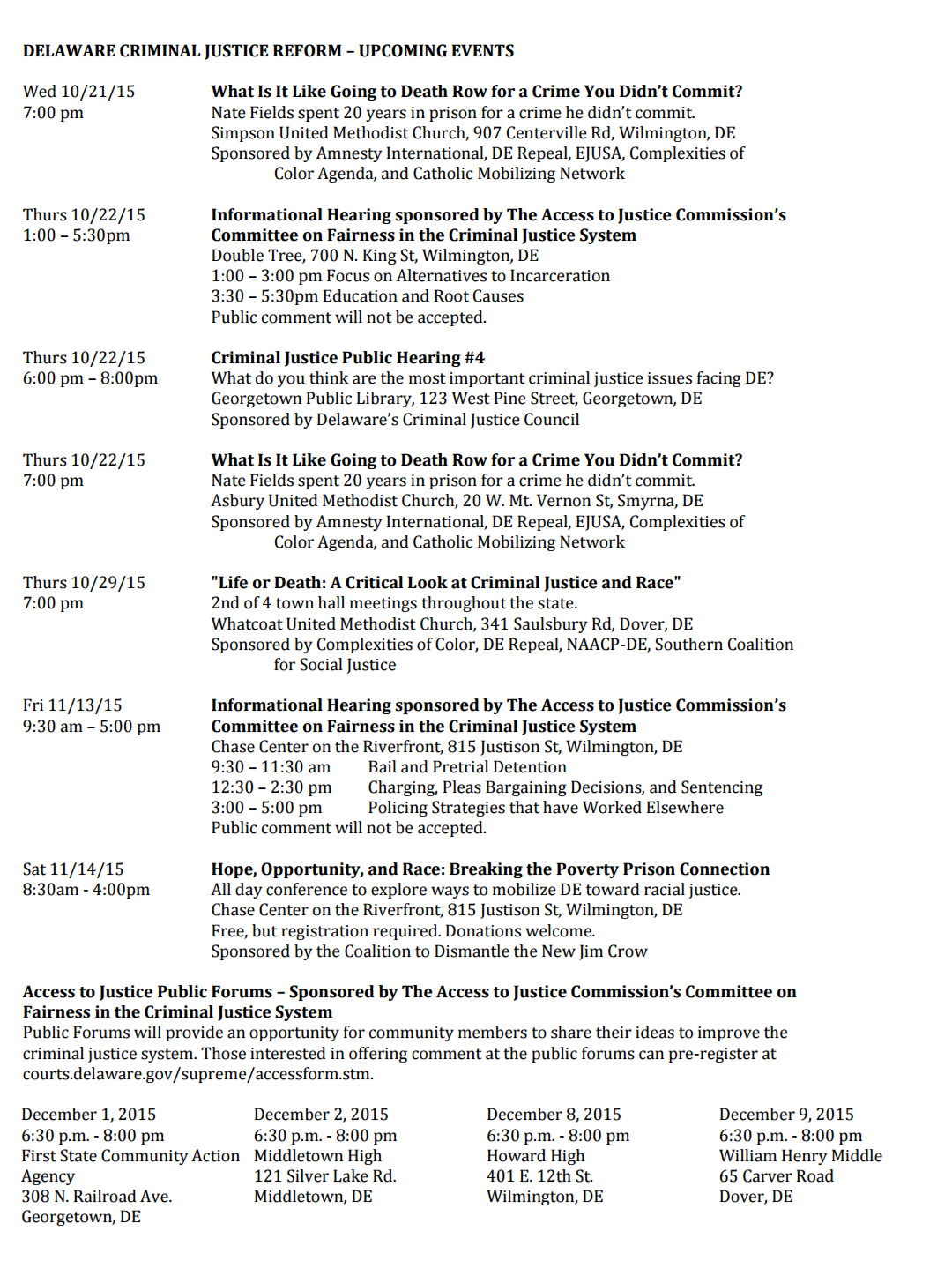 Upcoming Criminal Justice Reform Events in Delaware
